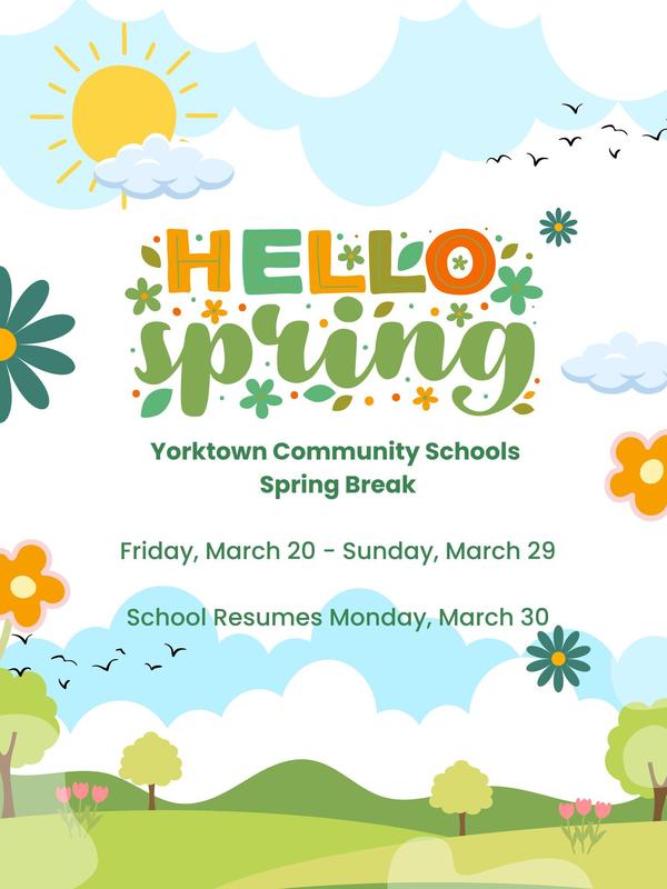 YES Families - Spring is here and so is Spring Break! Everyone is deserving of this time to relax and enjoy time with friends and family as we gear up for the last 39 days of the school year. We wish everyone well this week away from school and look forward to seeing everyone when they return!